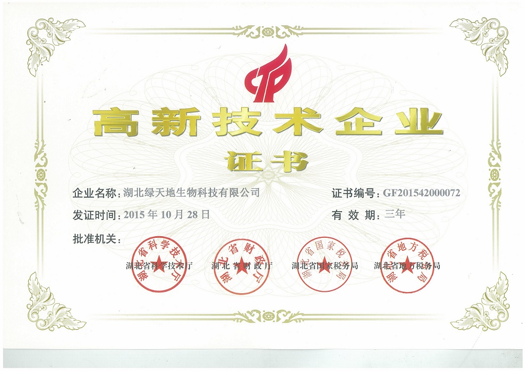 2015年“高新技術(shù)企業(yè)認(rèn)定證書”
