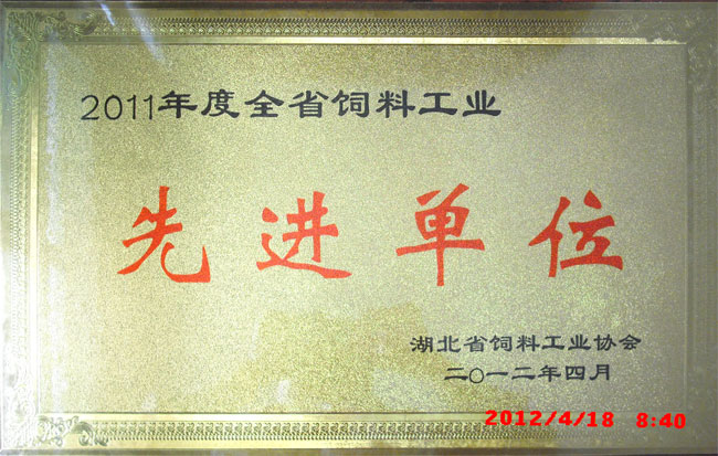 2011年湖北省飼料工業(yè)先進(jìn)單位稱號(hào)